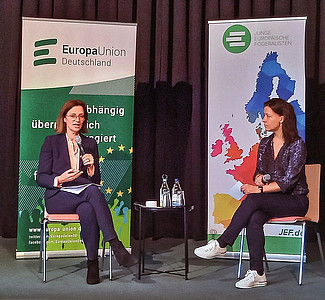 Ein besonderes Highlight des gemeinsamen Bundesausschusses von EUD und JEF am 25. März in Berlin war ein medienpolitisches Gespräch mit ZDF-Chefredakteurin Bettina Schausten. Themen waren die Zukunft des öffentlich-rechtlichen Rundfunks, dessen Werteorientierung und der Stellenwert europäischer Themen in der Berichterstattung. Die Anwesenden verliehen auch ihrer Sorge um die nachhaltige Finanzierung des deutschfranzösischen Senders ARTE Ausdruck. „Europaberichterstattung ist im ZDF immer wichtiger geworden“, sagte Schausten. Europa…